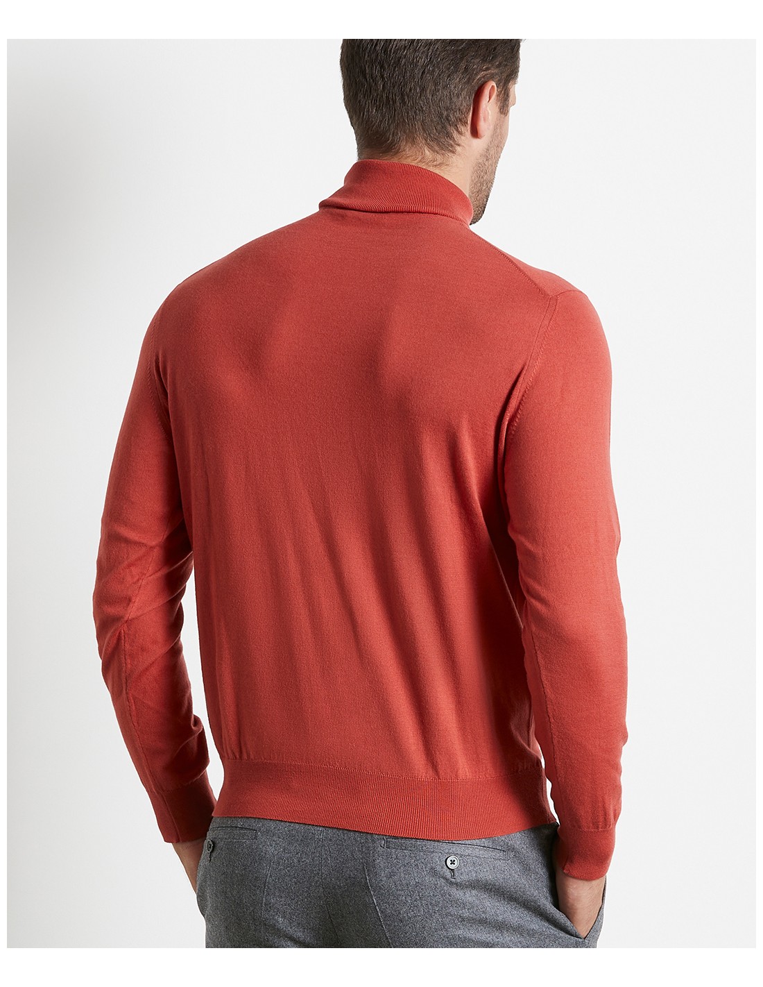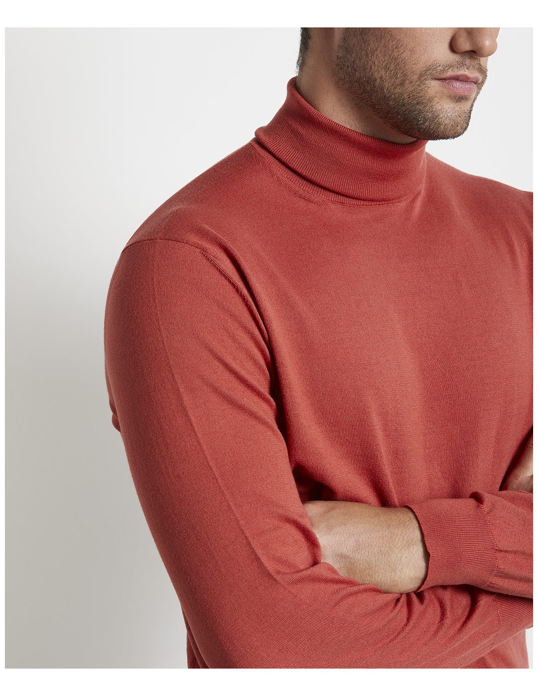 When creating a garment, we always imagine the pleasure you will get from wearing it. Because for us, true elegance is not a set of passing fashions, but freedom to express your idea of style for every occasion. If you recognize yourself in these words, our clay-colored turtleneck sweater in fine cotton and cashmere is right for you. We designed it with soft and regular fit wearability, as well as with a perfect smoothness that makes it easy to slip into, making you forget you’re wearing it. Perfect on its own with trousers for a casual look, or to wear under a jacket for a more refined and formal style.
