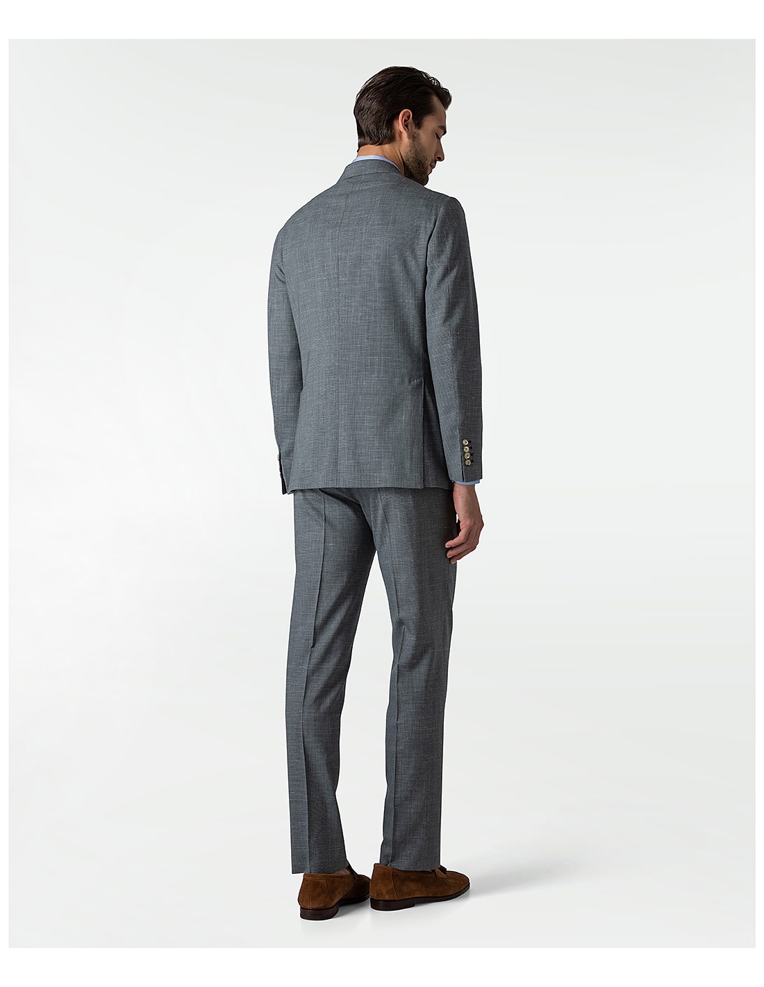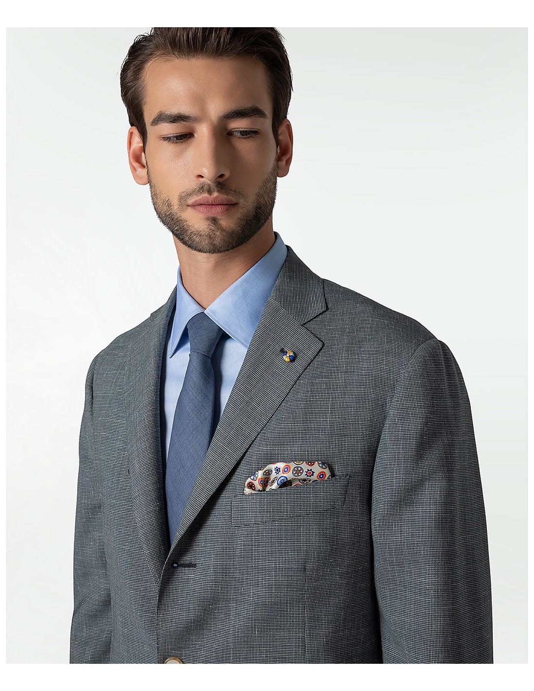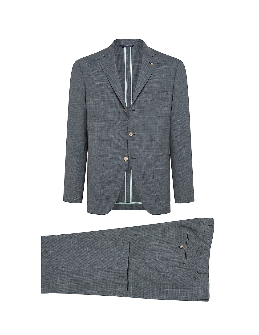Why have to choose between practicality and tailoring perfection? For this houndstooth patterned, green wool-blend suit we've created a soft, regular fit that's perfectly designed for your need to switch from a business meeting to a casual dinner, while remaining as impeccable as ever. This suit is part of the JACKETINTHEBOX© line, our exclusive offer of unlined and unstructured garments, designed to be feather-light while being worn and practical should they have to be packed in a suitcase while traveling. This is a single-breasted jacket with three buttons pressed to two, it has a classic notched lapel, with a relaxed fit at the shoulder to ensure freedom of movement. It also features two patch pockets and a slanted breast welt pocket for keeping necessary items at hand. The small Murrina lapel pin makes the jacket even more distinguished, and is a tribute to your style and to your desire for individualism. Matching trousers are dart-less and feature American style pockets. Each garment is Made in Italy in our Piazzola sul Brenta atelier, where the expert and patient hands of our master craftsmen select and work with the finest fabrics the world can offer.