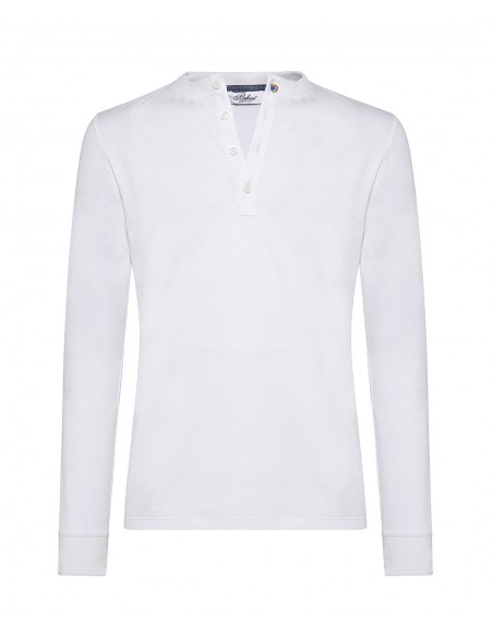 If you're looking for new perspectives, and need to feel impeccable on every occasion, then our garments are perfect for you. The white, four-button Serafino T-shirt will impress you with its understated elegance and modern, slim fit. We made it in a soft, fresh cotton, to follow your figure, making you forget that you‘re wearing it. This T-shirt is designed to be a versatile piece to team with a jacket if you want an elegant but informal look. If you prefer feeling more comfortable, you can wear it on its own, teamed with casual trousers. The small Murrina in the eyelet makes the T-shirt even more distinguished, and is a tribute to your style and to your desire for individualism. Each garment is Made in Italy in our Piazzola sul Brenta atelier, where the expert and patient hands of our master craftsmen select and work with the finest fabrics the world can offer.