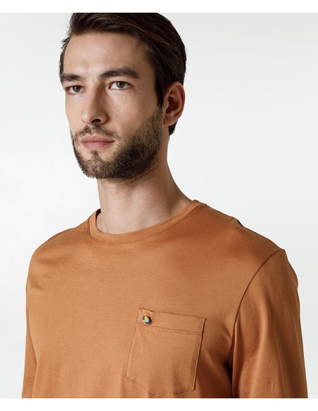 When we speak of elegance, we’d prefer not to think of a set of rules or limitations, but rather of freedom to choose the perspective that is most true to your idea of style. And it is to give you this opportunity that our garments are created to be versatile, unique in their simple beauty and fascinating detail. Like the long-sleeved rust colored crewneck T-shirt with its modern slim fit, made in soft cotton. The small Murrina on the pocket eyelet makes the T-shirt even more distinguished, and is a tribute to your style and to your desire for individualism. Each garment is Made in Italy in our Piazzola sul Brenta atelier, where the expert and patient hands of our master craftsmen select and work with the finest fabrics the world can offer.