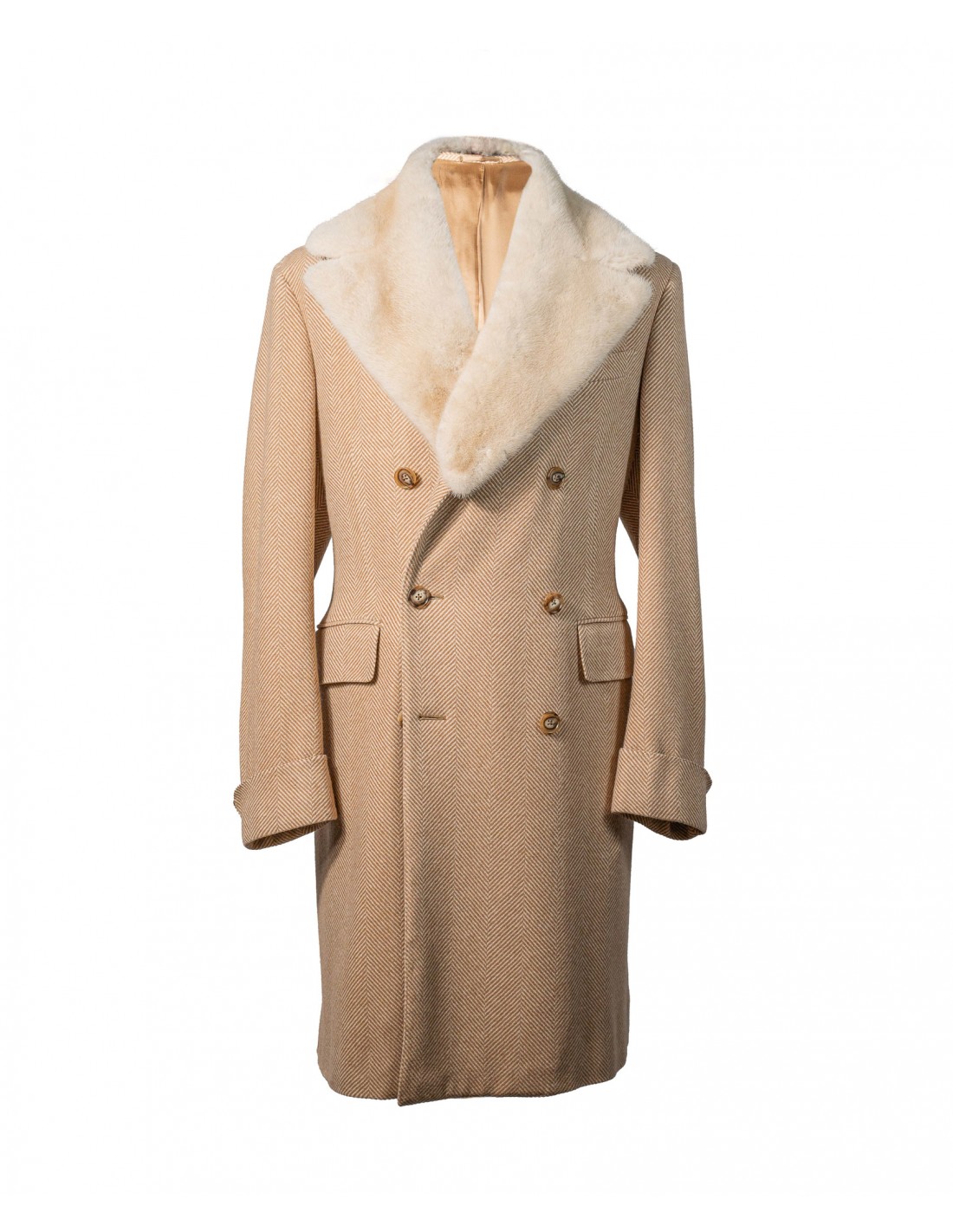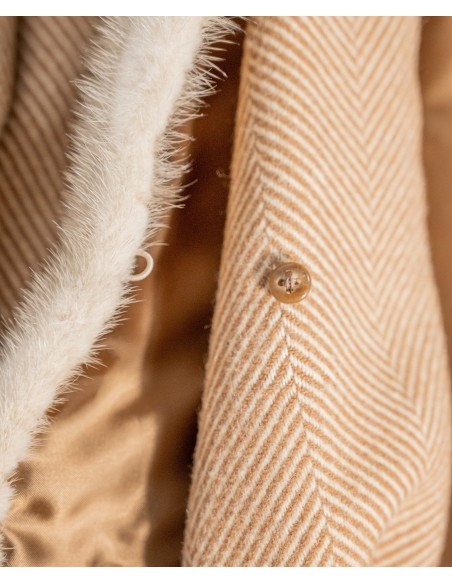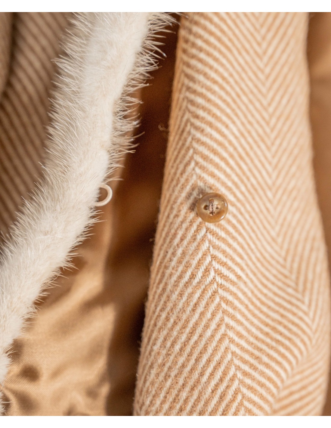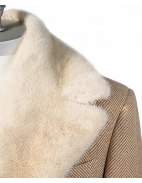 Wrap yourself in this double-breasted coat with martingale, in natural tones and beige herringbone. Crafted from pure yak and finished with a detachable mink collar, it discreetly combines warmth and luxury. Perfect for those seeking a precious and elegant garment, to be worn in style on the coldest days.