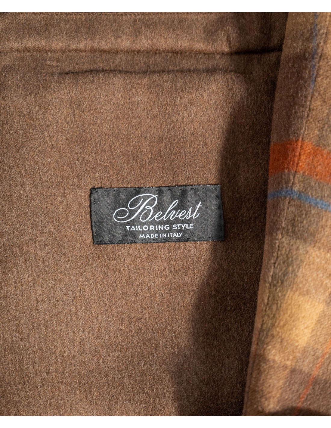 Wrap yourself in this double-breasted coat crafted in double fabric, in brown and red tones with a delicate blue check. The wool blend ensures structure, durability and comfort. A classic reinterpreted with a modern twist, perfect for completing your winter wardrobe with style.