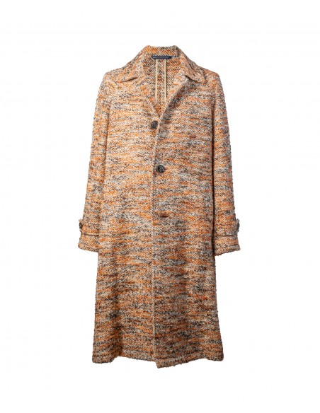 Orange, brown and natural color unconstructed single-breasted coat in wool, baby alpaca and polyamide | JACKETINTHEBOX®