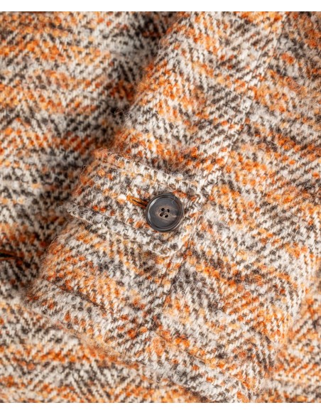 JACKETINTHEBOX® - Lightweight, unlined and unstructured garments, designed to allow you to effortlessly transition from a business meeting to an informal gathering, while always remaining impeccable. Take on winter in style with this deconstructed single-breasted coat featuring an orange, brown and natural herringbone pattern. The blend of wool and baby alpaca gives it a soft and pleasant touch. Ideal for those who want an authentic and contemporary look without sacrificing comfort.