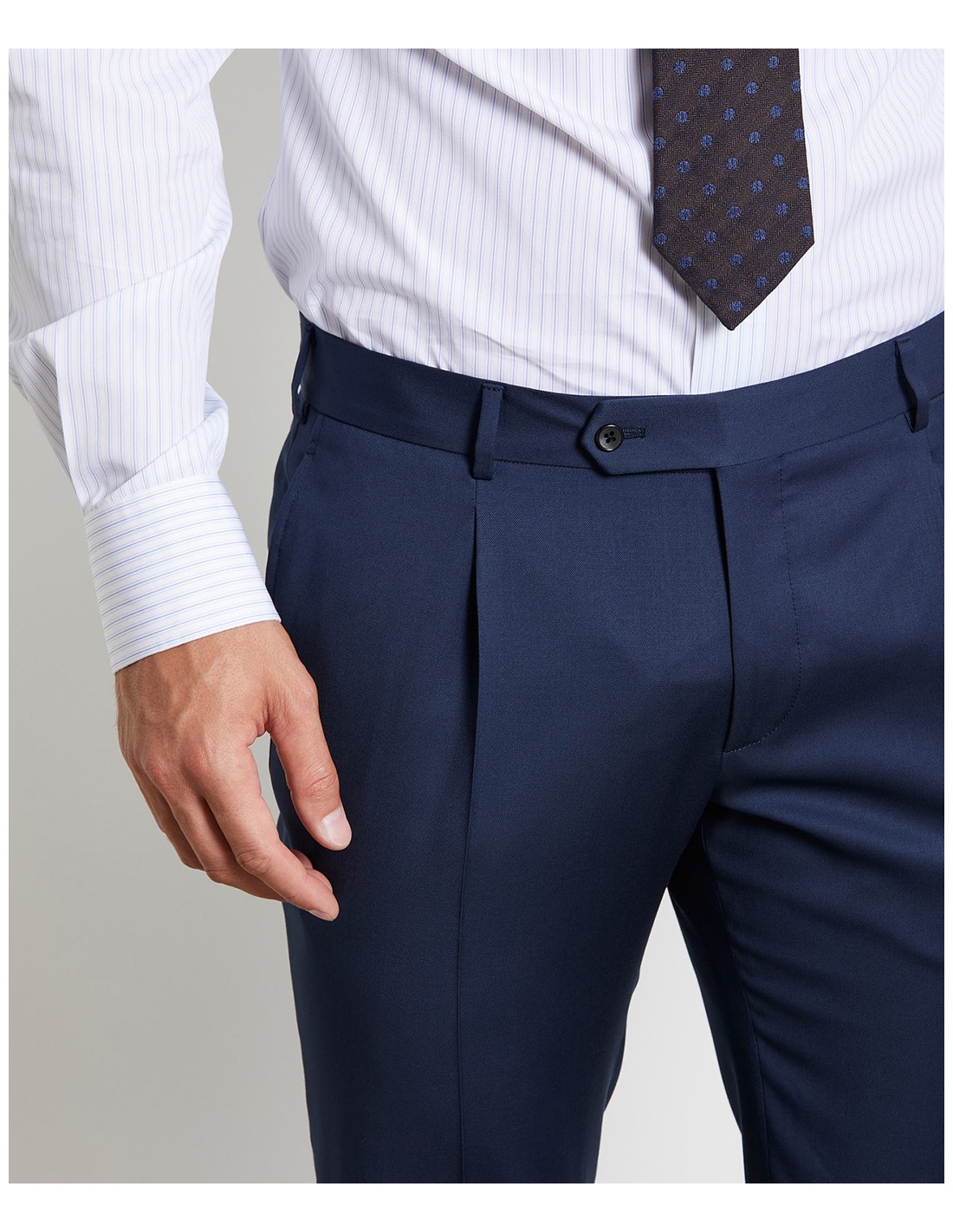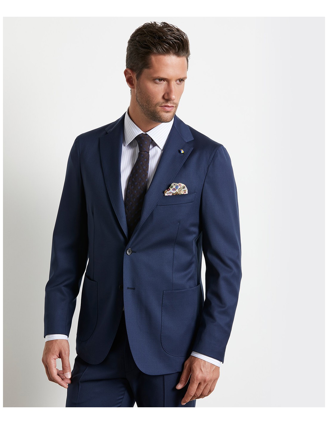 Avere uno stile impeccabile è la condizione essenziale per sentirti a tuo agio in ogni momento della giornata. Per questo abbiamo ideato la tecnologia DYNAMIC WASHABLE: grazie all’innovativo tessuto, potrai lavare il capo in lavatrice con un ciclo normale a 30° C. Inoltre dopo il lavaggio ti basterà solo appenderlo e lasciarlo asciugare, senza necessità di stirarlo. Per questo abito abbiamo scelto una pregiata lana blu navy, per dare vita a una vestibilità morbida e regolare. La giacca presenta un rever classico, è monopetto a tre bottoni "stirato a due"; la sua particolarità è che è completamente sfoderata e decostruita, così da essere leggerissima e impalpabile una volta indossata. L'abbiamo studiata in ogni dettaglio, a cominciare dalle due tasche a toppa e dal taschino a barchetta per permetterti di avere sempre a portata di mano quello che ti serve. Infine i pantaloni abbinati sono caratterizzati da una pince e dalle tasche all’americana, impreziosite dal taschino porta orologio.