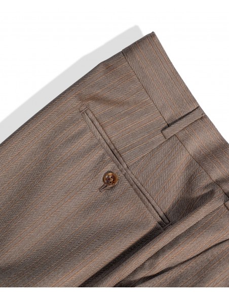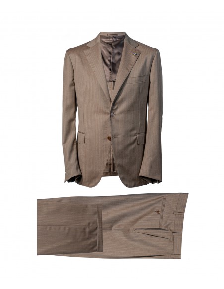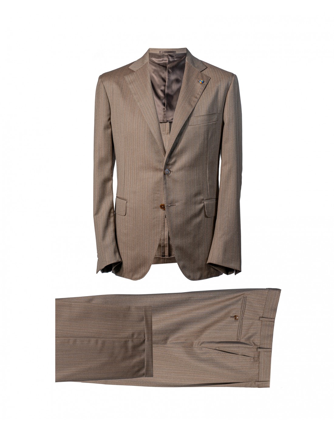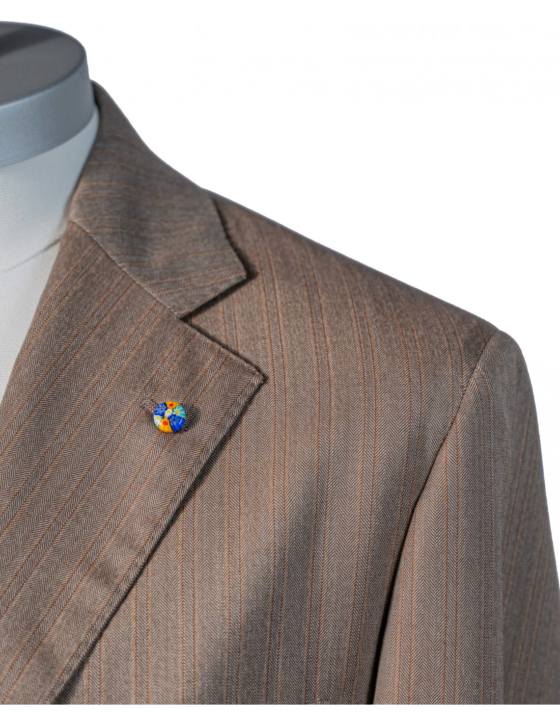Abito monopetto spinato marrone con riga beige e marrone scuro in lana | NATURAL SOFT