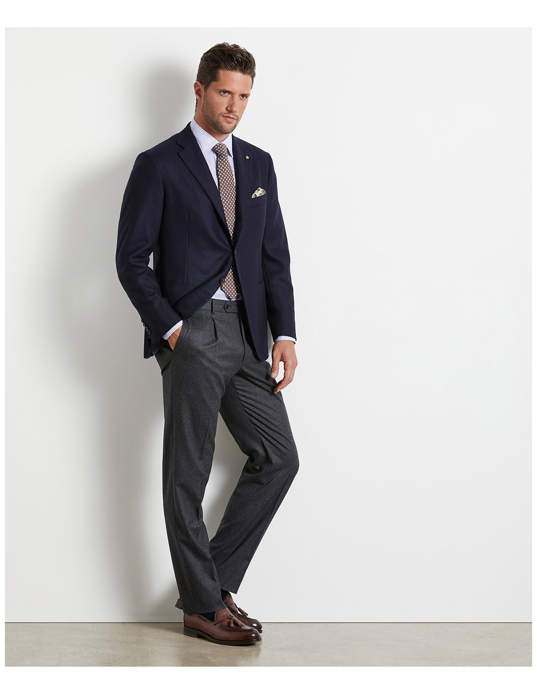 Noi non amiamo i compromessi. Se anche tu, come noi, non vuoi sentirti costretto a scegliere tra funzionalità e perfezione sartoriale, tra comfort ed eleganza, amerai le nostre giacche NATURAL SOFT. Questa linea di capi sartoriali è studiata con una spalla più morbida, così da seguire come una seconda pelle ogni tuo movimento. La giacca blu navy è realizzata con un tessuto in lana e seta pregiate dal motivo diagonale, incantevole al tatto. La vestibilità è morbida e regolare, per farti sentire sempre impeccabile. La giacca è monopetto a tre bottoni "stirato a due", ha un rever classico ed è completamente foderata. Grazie alle due tasche a toppa e al taschino a barchetta potrai avere sempre a portata di mano quello che ti serve.