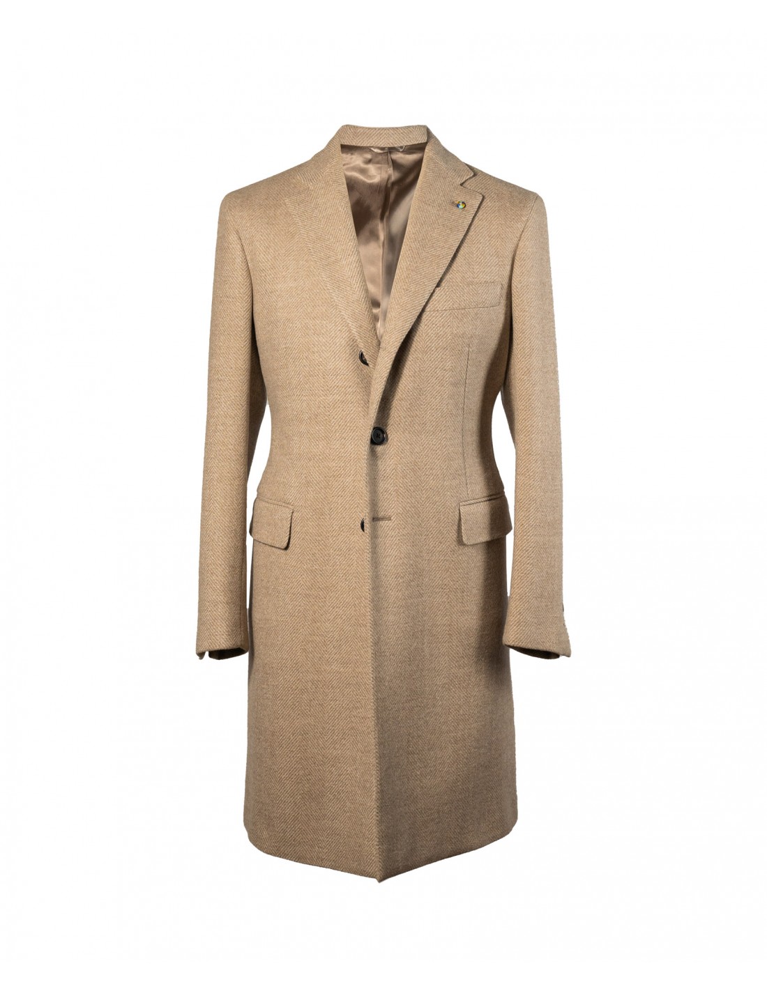 Cappotto monopetto spinato colore naturale in lana di pecora nera | NATURAL SOFT