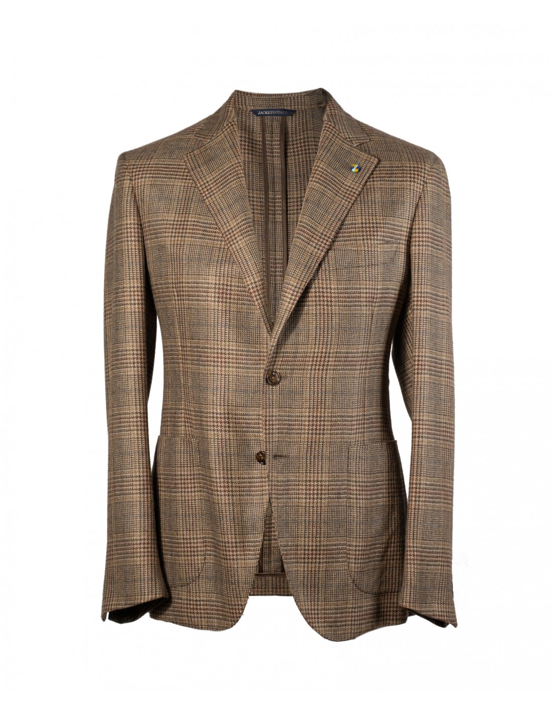 Giacca monopetto principe di Galles color marrone con check marrone scuro in 100% cashmere | JACKETINTHEBOX®