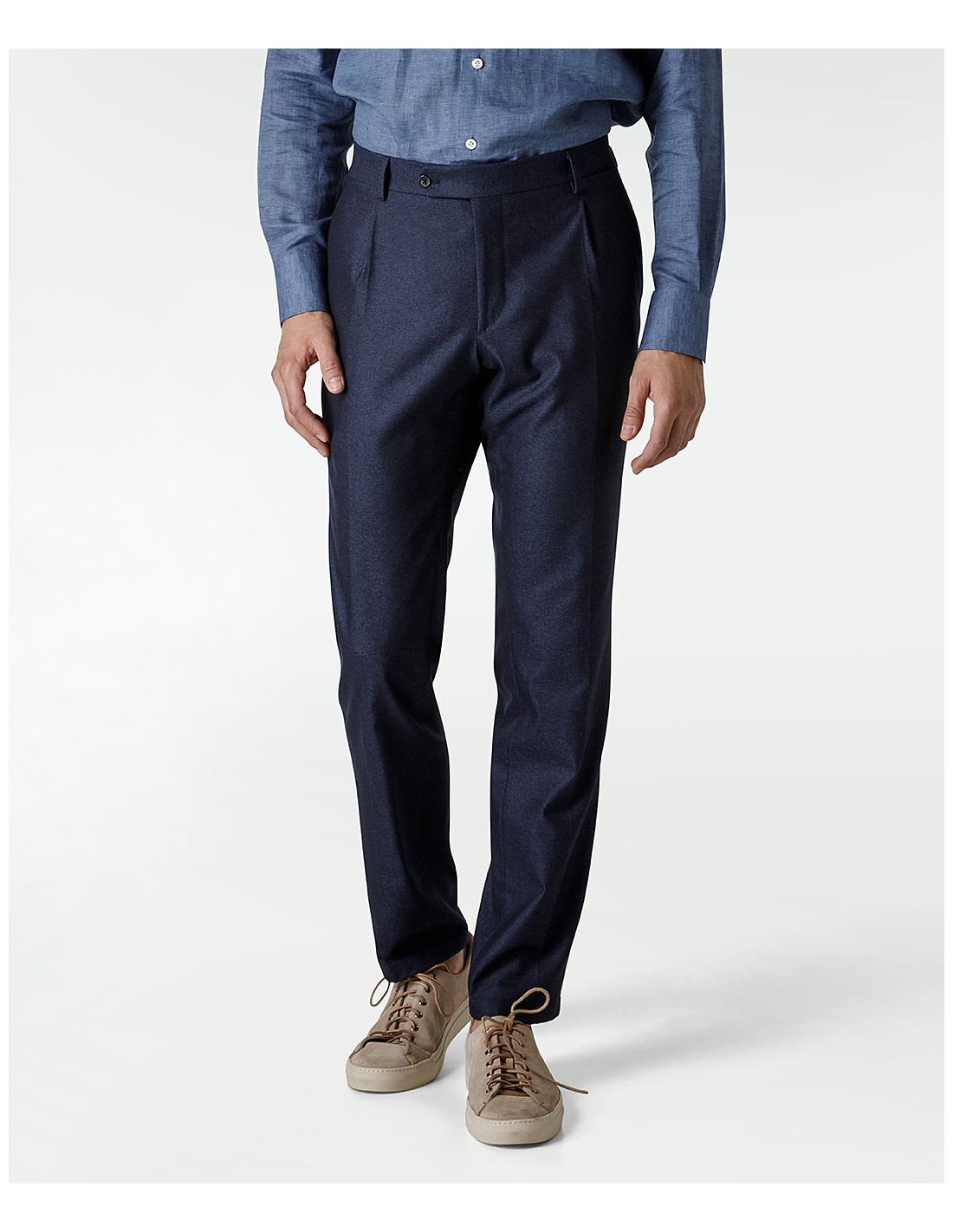 Quando creiamo un capo, la nostra soddisfazione più grande è pensare al piacere che ti darà indossarlo. Perché per noi lo stile non è un insieme di mode passeggere, ma la libertà di esprimere te stesso, sentendoti a tuo agio in ogni momento. I pantaloni blu sono in leggera lana-cashmere, perfetti da indossare se cerchi una vestibilità comoda e regolare, grazie alla pince. Li abbiamo progettati con le tasche all’americana e il pratico taschino porta orologio, per avere sempre a portata di mano gli oggetti indispensabili.